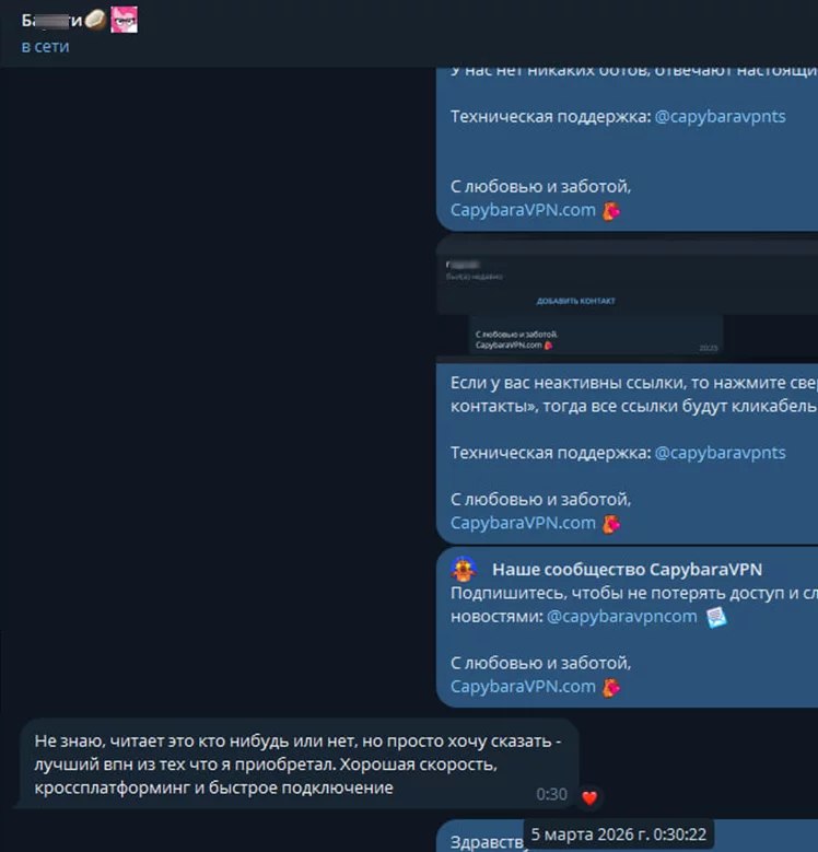 Если вы уже пользуетесь CapybaraVPN — поделитесь впечатлениями: @capybaravpnts