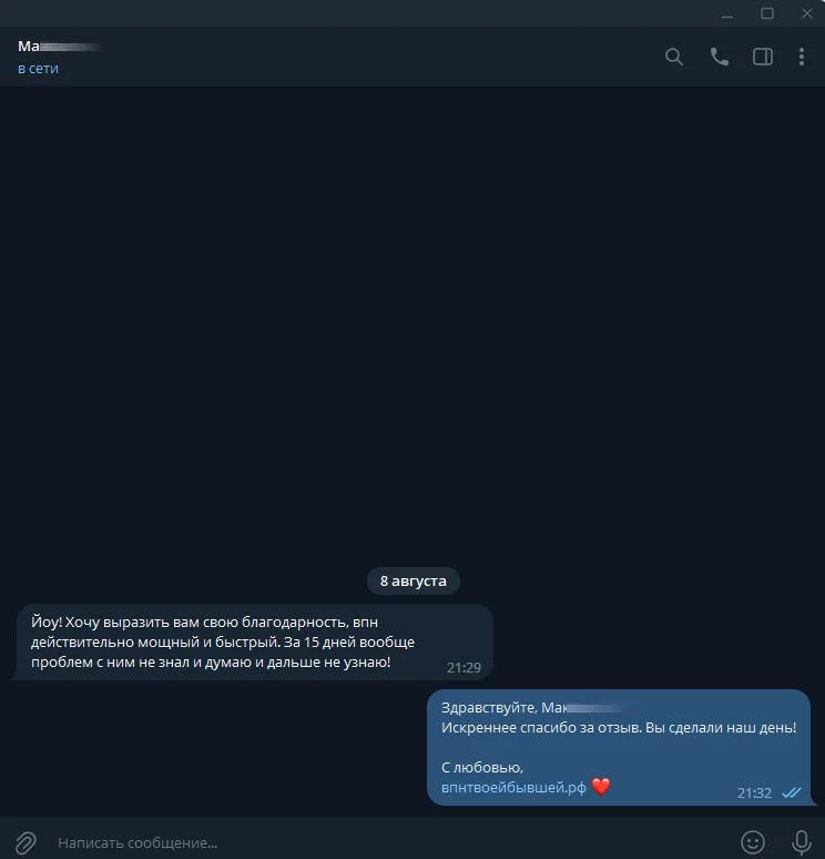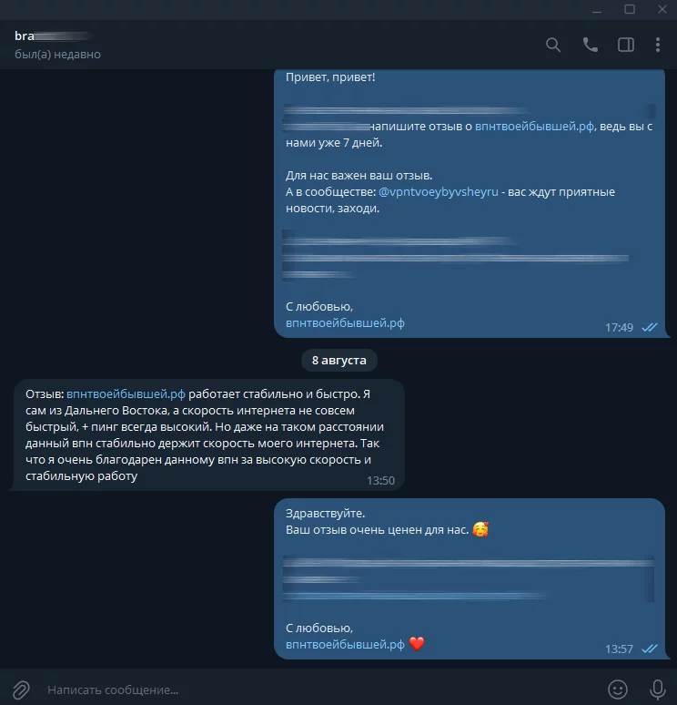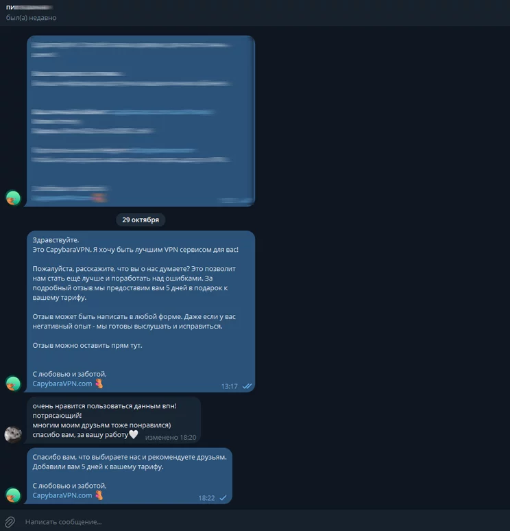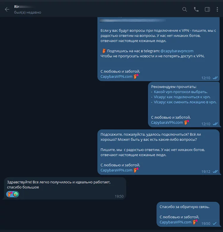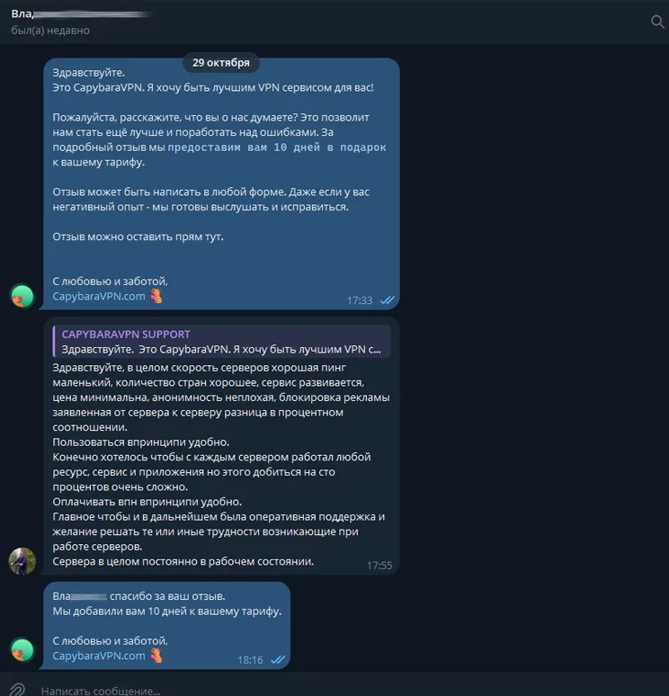 Отзывы от реальных клиентов CapybaraVPN.com. Если у вас уже есть опыт с нашим сервисом, то будем рады любому отзыву: написать в свободной форме.
